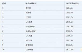 你有没有发现,最近你的朋友圈是不是也被那些搞笑、才艺、美食的短视频刷屏了?没错,说的就是那个让全民都爱不释手的短视频平台——快手。在这个平台上,无数网红如雨后春笋般涌现,那么,你知道目前中国快手网红排名是怎样的吗?今天,就让我带你一探究竟!